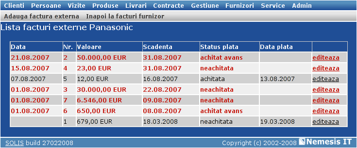 In sectiunea dedicata furnizorilor puteti urmari plata facturilor externe, pentru fiecare furnizor in parte.