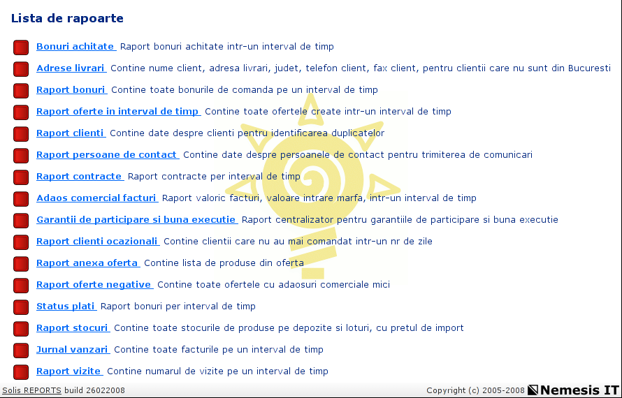 Modulul SOLIS Reports permite extragerea informatiei din baza de date, in rapoarte dinamice.Rapoartele SOLIS sunt configurabile si contin informatiile actuale in momentul generarii lor.